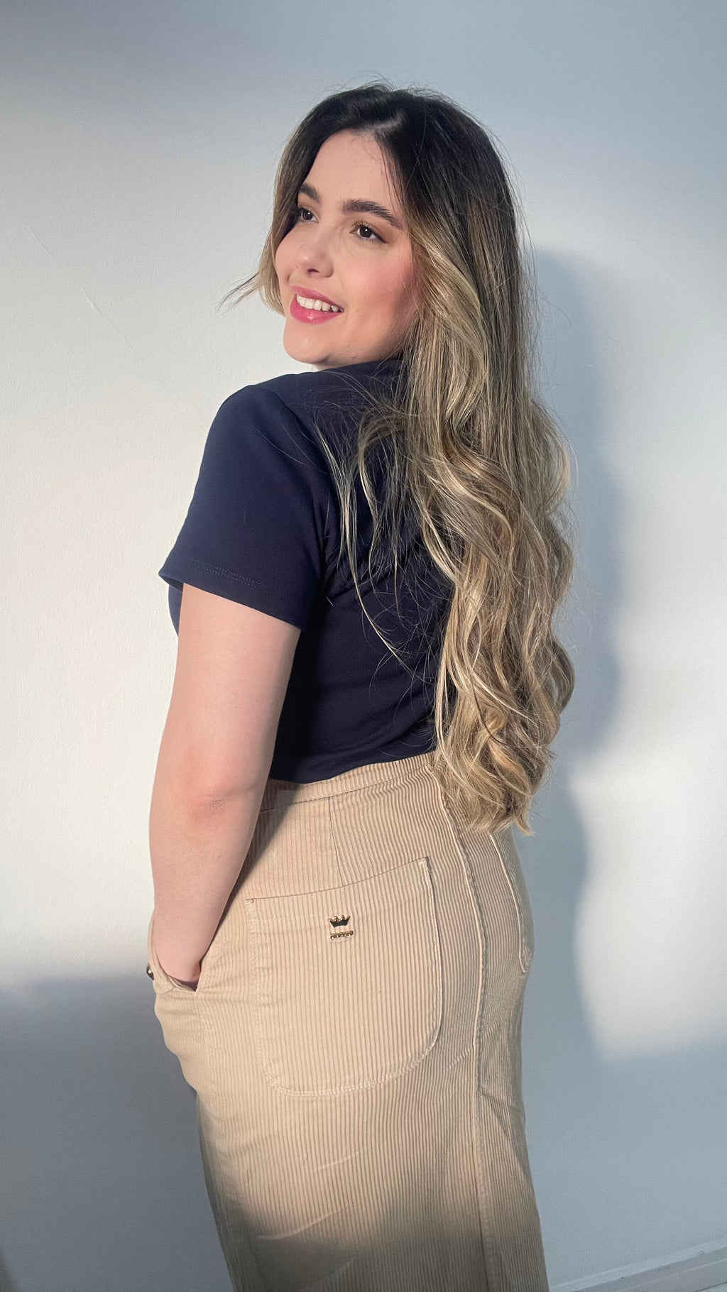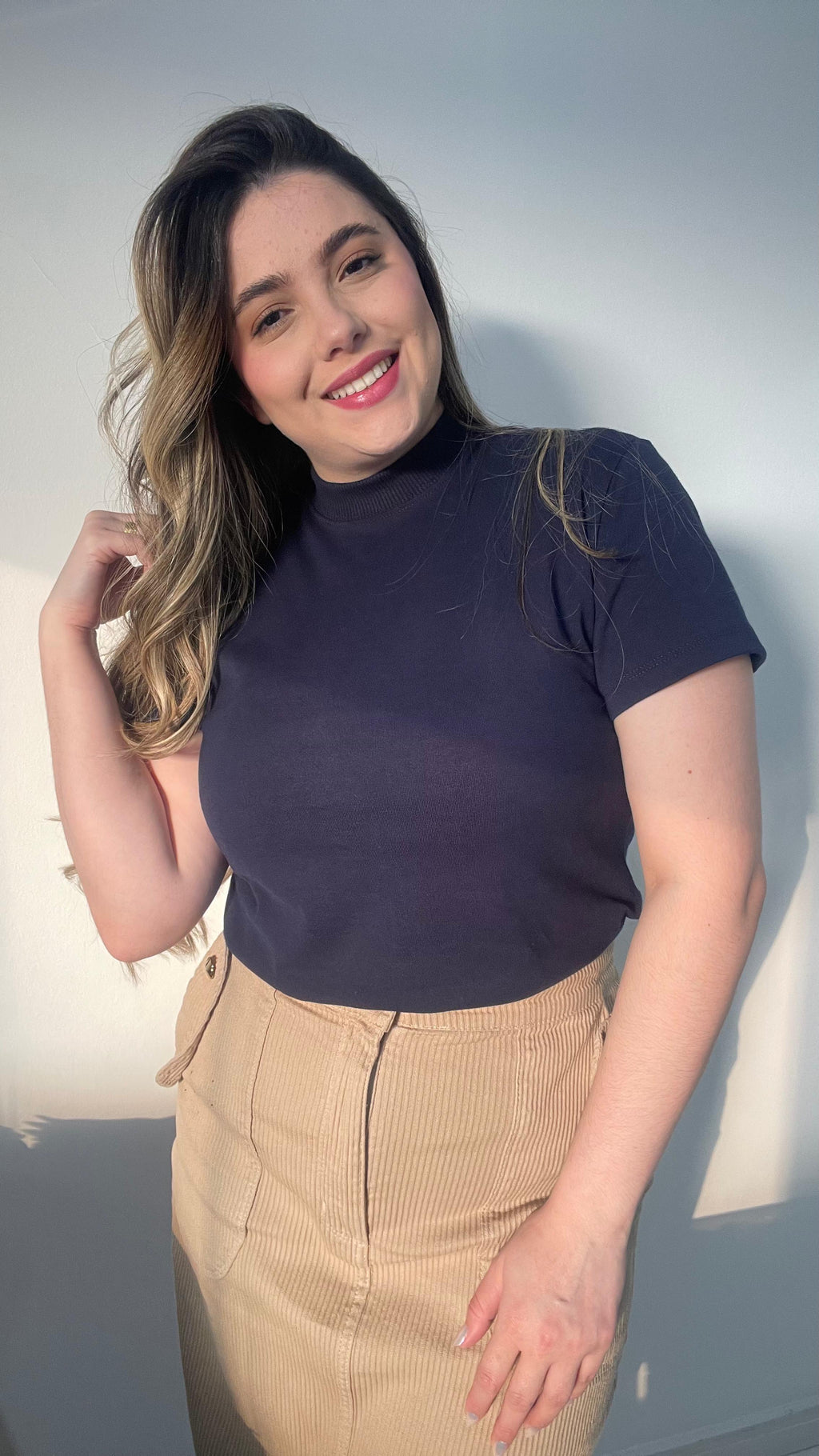 A Camiseta gola alta é a definição de versatilidade e estilo. Com gola alta estilo mock e caimento elegante, é a peça perfeita para compor desde produções casuais até looks mais sofisticados. A cor preta traz praticidade e elegância atemporal, tornando essa blusa indispensável no guarda-roupa.