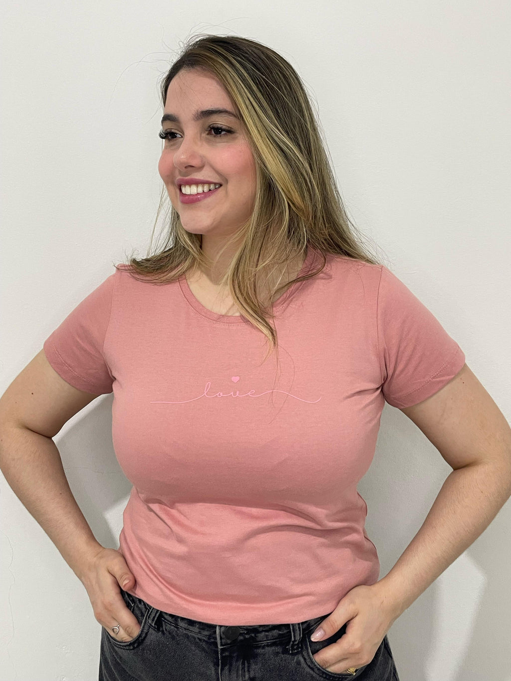 A Camiseta Feminina 'Love' é a definição de estilo minimalista com um toque romântico. Confeccionada em malha confortável e respirável, traz a delicadeza do rosa suave e a estampa sutil com a palavra 'Love' acompanhada de um pequeno coração. Ideal para quem busca peças versáteis e charmosas, que combinam com produções casuais e elegantes. Use no dia a dia, no trabalho ou em momentos de lazer, garantindo sempre conforto e muito estilo.